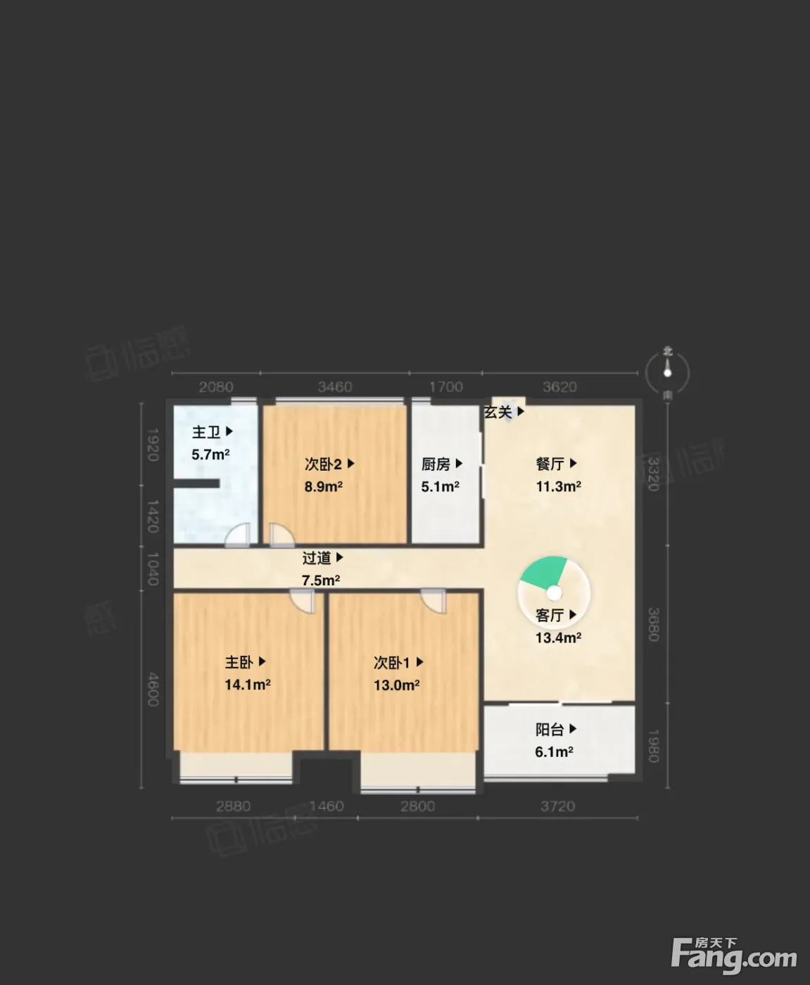 户型齐全,主打客厅朝南,卧室朝南三居