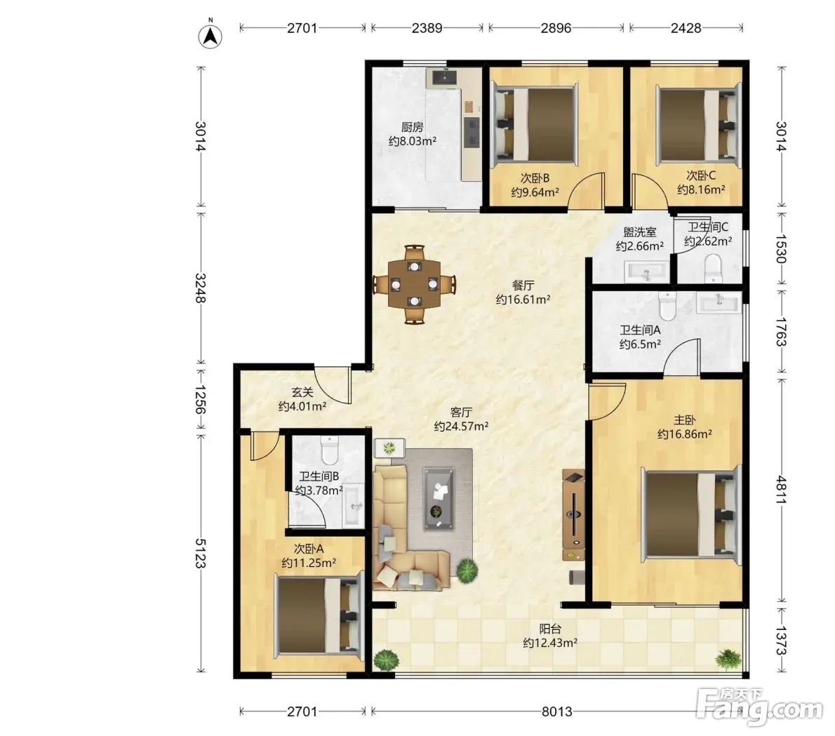 户型齐全,主打南北通透,客厅朝南四居
