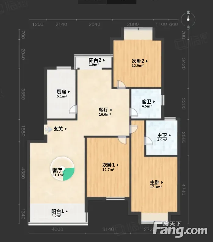 户型齐全,主打户型方正,明卫,明厨,客厅朝南三居