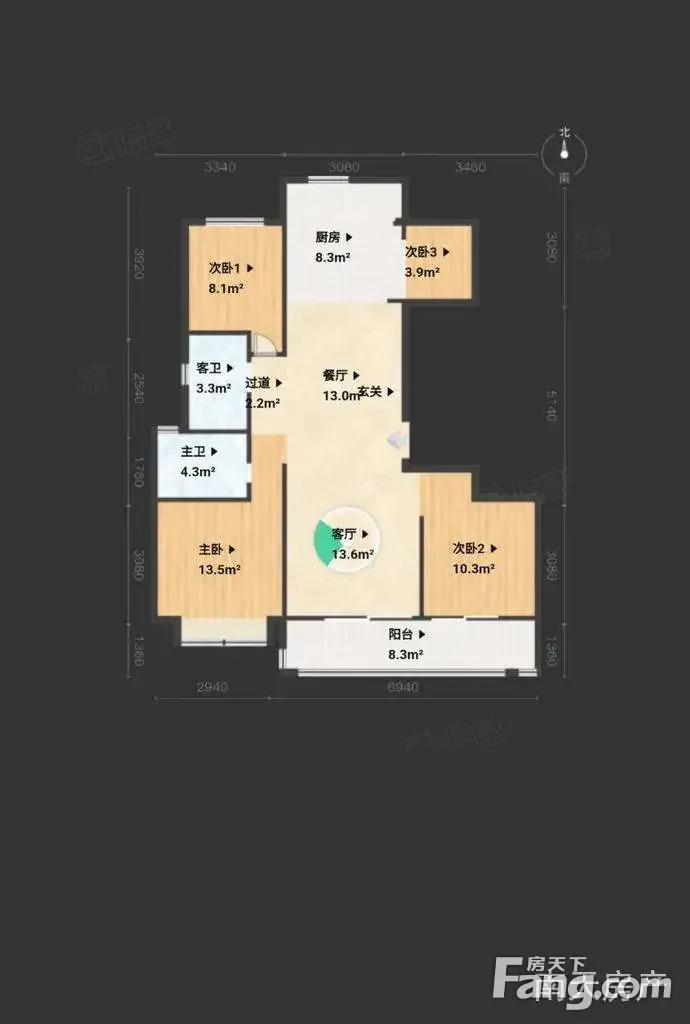 户型齐全,主打南北通透,客厅朝南三居