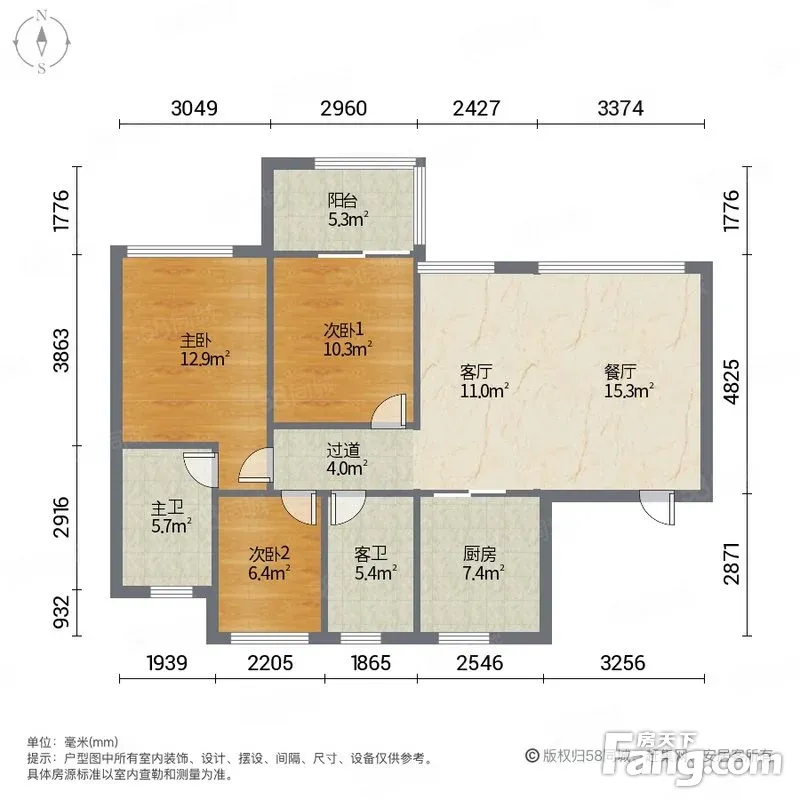 户型齐全,主打南北通透,全明格局四居
