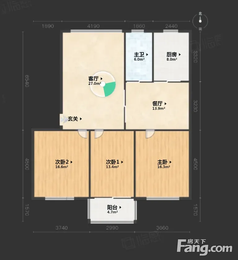 户型齐全,主打户型方正,明卫,明厨,客厅朝南,全明格局三居