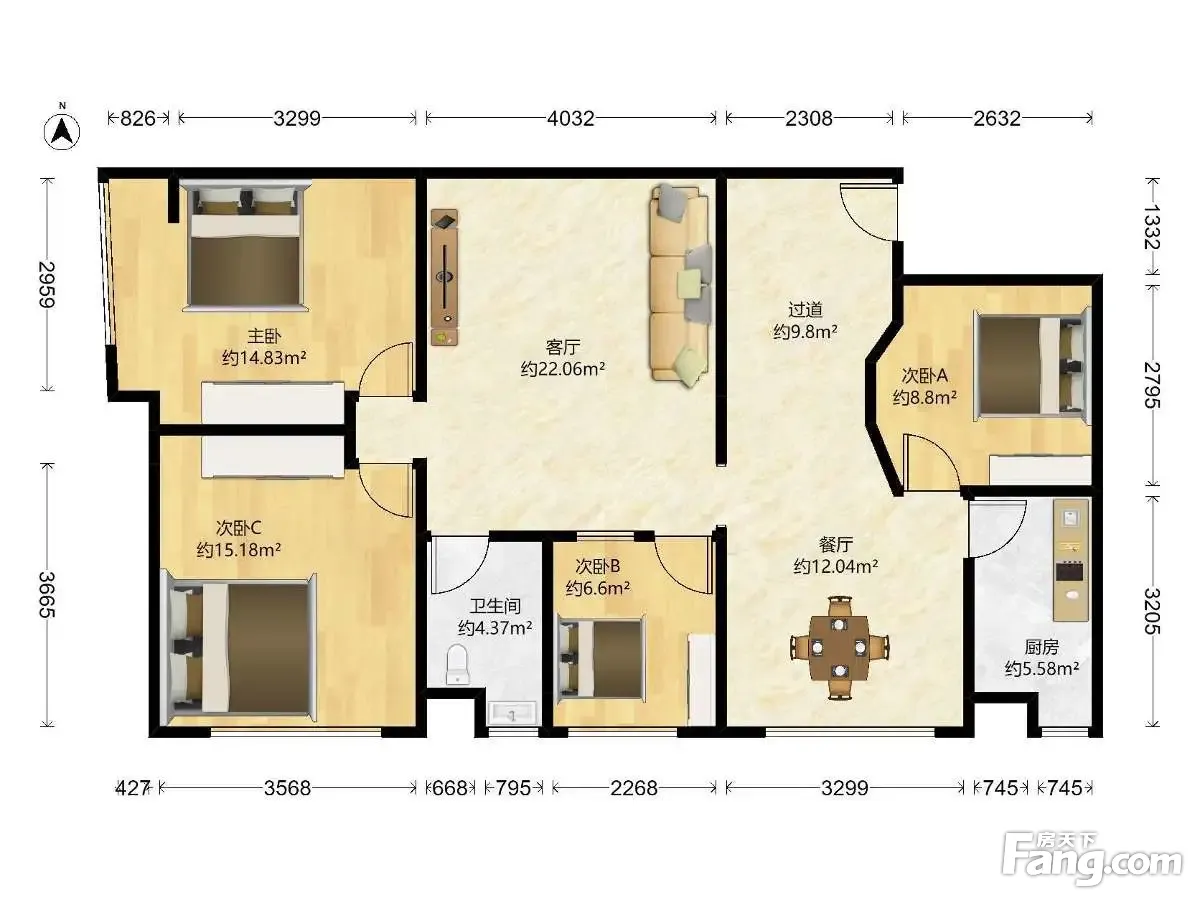 户型齐全,主打户型方正,明厨,客厅朝南三居
