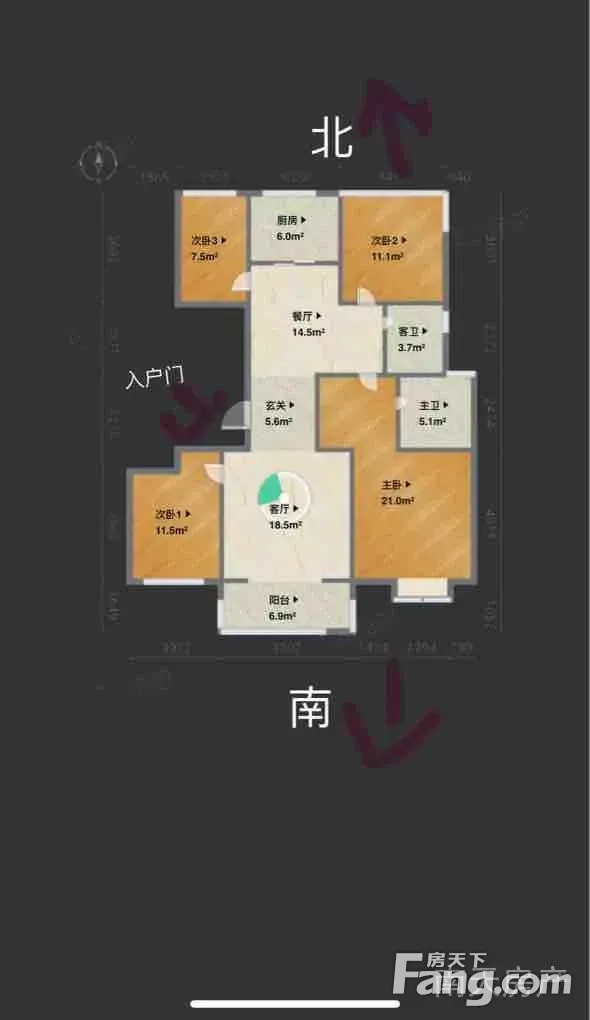 户型齐全,主打客厅朝南,卧室朝南四居