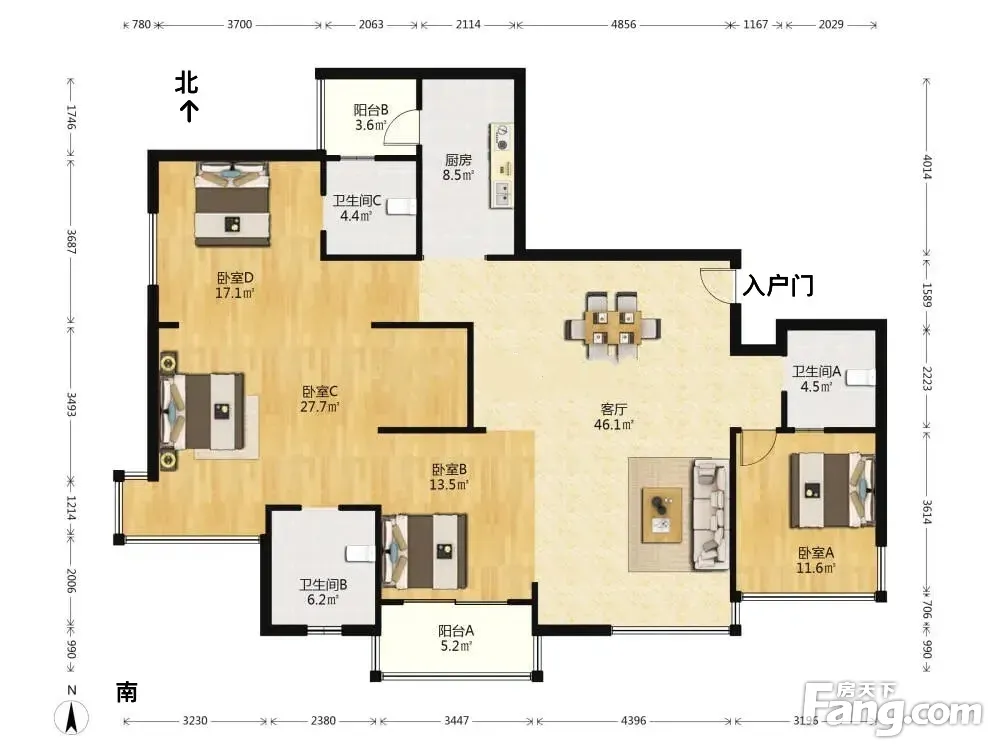 户型齐全,主打明卫,双阳台,双卧朝南,主卧朝南四居