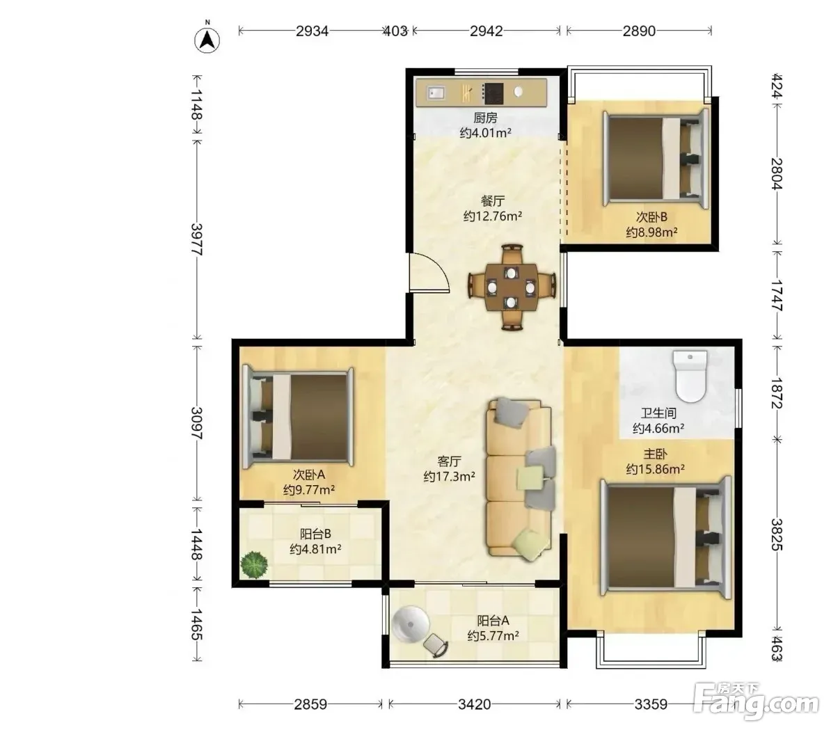 户型齐全,主打明厨,明卫,双阳台四居