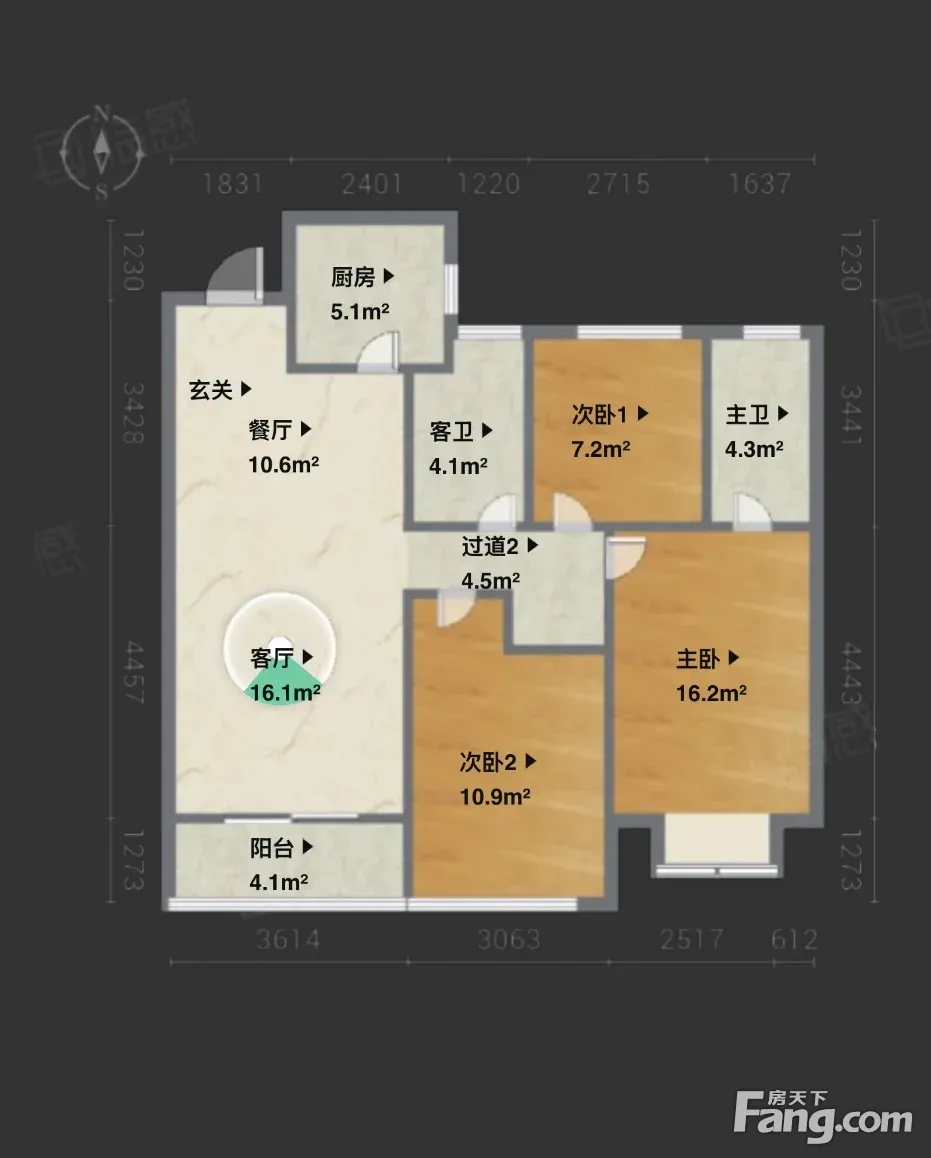 户型齐全,主打客厅朝南,卧室朝南四居