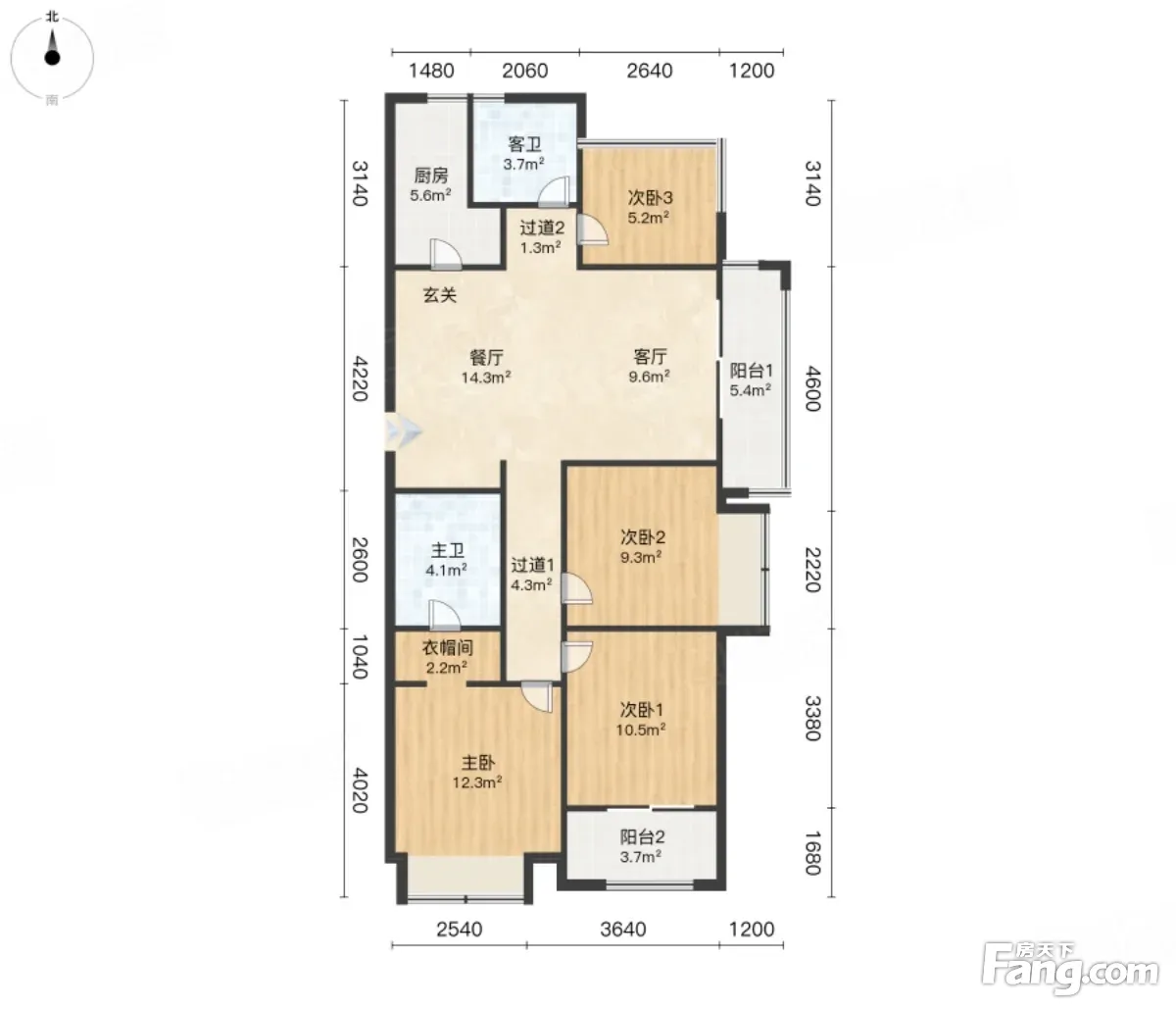 户型齐全,主打户型方正,明卫,明厨,双卧朝南,主卧朝南三居