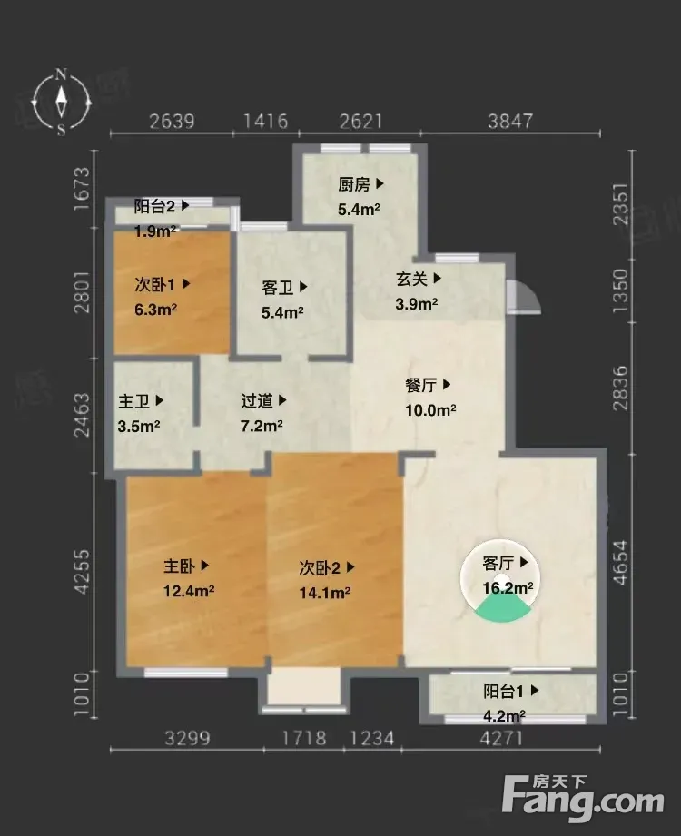户型齐全,主打户型方正,明卫,明厨,客厅朝南,全明格局,双卧朝南三居