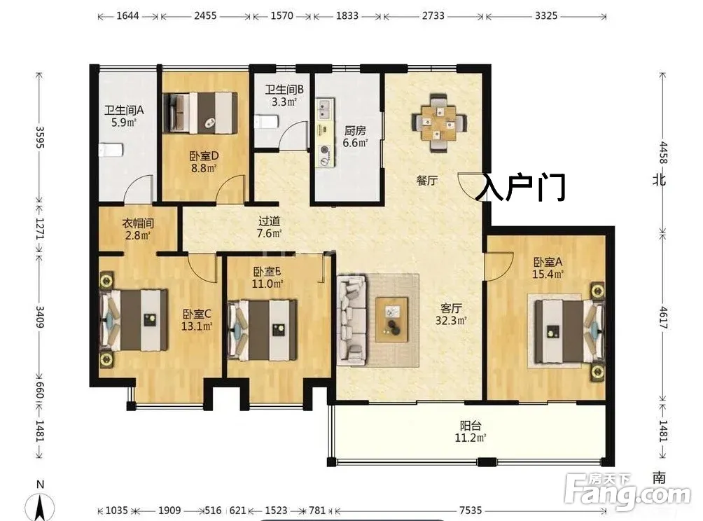 户型齐全,主打明卫,明厨四居