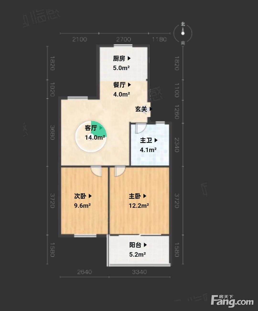 户型齐全,主打明厨,客厅朝南,主卧朝南二居