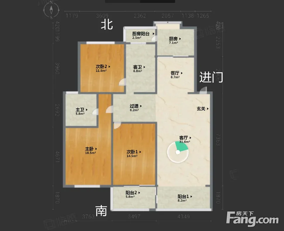 户型齐全,主打明厨,客厅朝南,主卧朝南,明卫,双阳台三居