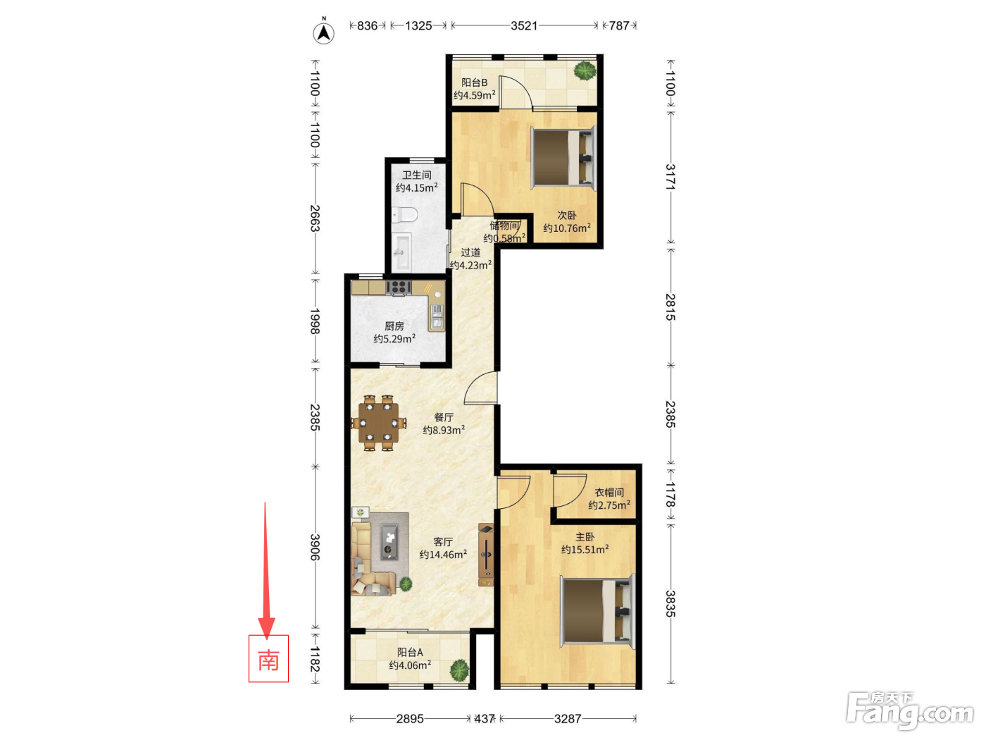 户型齐全,主打明厨,明卫,客厅朝南,全明格局,双卧朝南三居