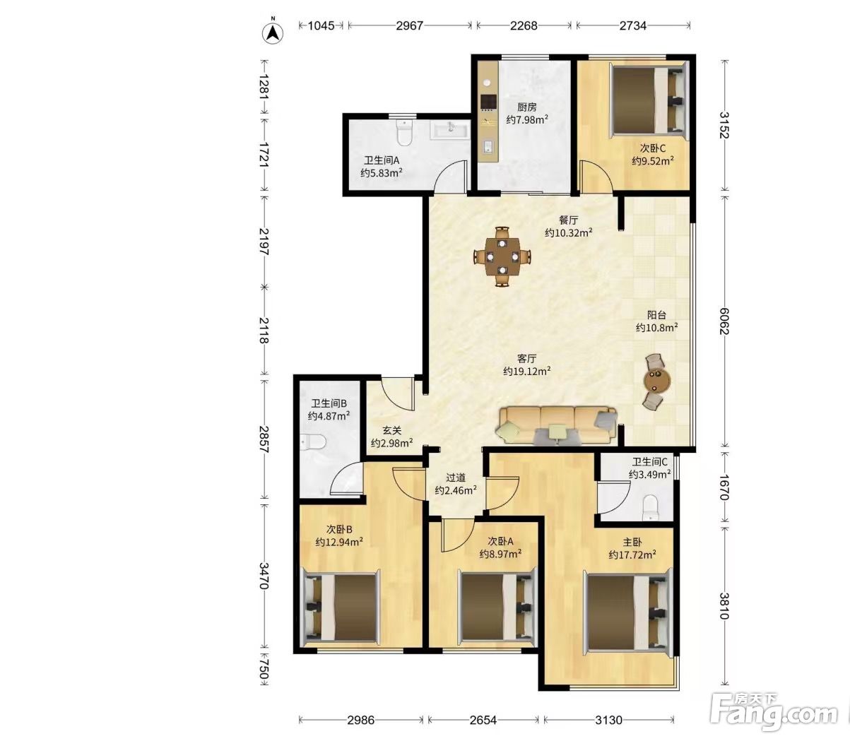 户型齐全,主打南北通透,客厅朝南四居