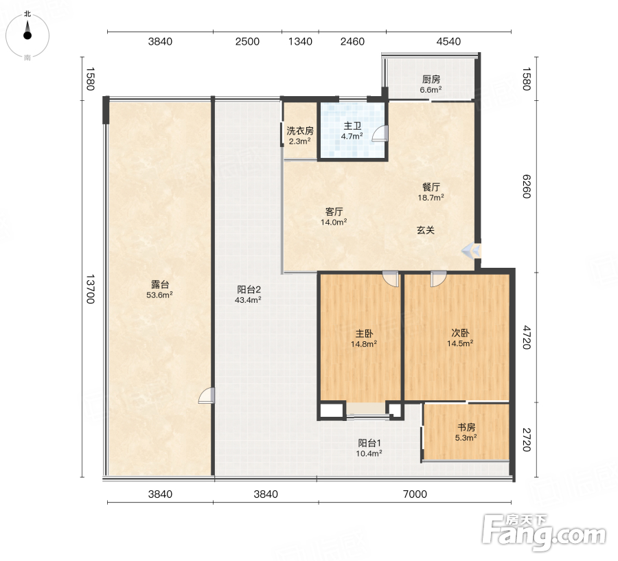 楼梯房的二楼,大露台150平左右,房子保养好。