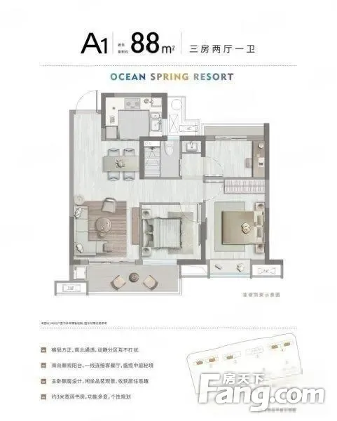 《港中旅海泉湾》1.此房面积89平的三居室,两梯四户的户型,南北通透采光好!并且公摊面积少,房子为毛坯交付,户型利用。70年住宅可落宁波户小区自带25万方体,9年制公立,年底建成,房子交付时公立就可以直接投入使用,商场是开发商自持十年,打造7千方盒马鲜生生鲜超市,顶楼聚集7个国家餐饮美食,影城24营业,生活配套齐全 交通配套:沪嘉甬高铁。杭甬复线(不限速的高速),宁波—慈溪—新区的轻轨 配套:滨海上海世外,重点,宁波财经,职业技术 配套:日式温泉三岛,国风街,洲际假日酒店,**文化,活力运动乐园医疗配套:宁波二院(三级甲等)直线距离八百米4.公认的央企品质,物业资质,尽心尽责。 【医疗】杭州湾医院(上海交大附属仁济医院和宁波二院合力打造)三级甲等医院【】世纪金源,金源酒店,奥特莱斯(规划中)永辉,合生汇,凯悦酒店等等。 产权:70年容积率:2.5绿化率:40%车位比:1:1.1物业费:2.6元总层数:24-28F 占地面积:5.59万方 一楼全部架空抬高加架空4米9