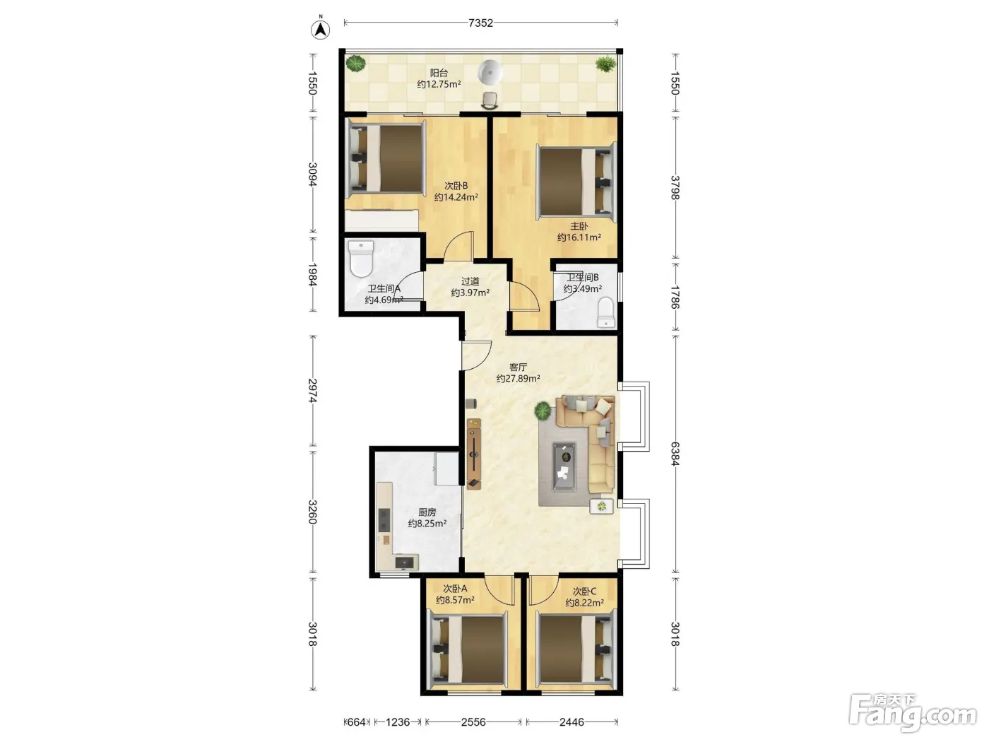 户型齐全,主打全明格局,户型方正三居