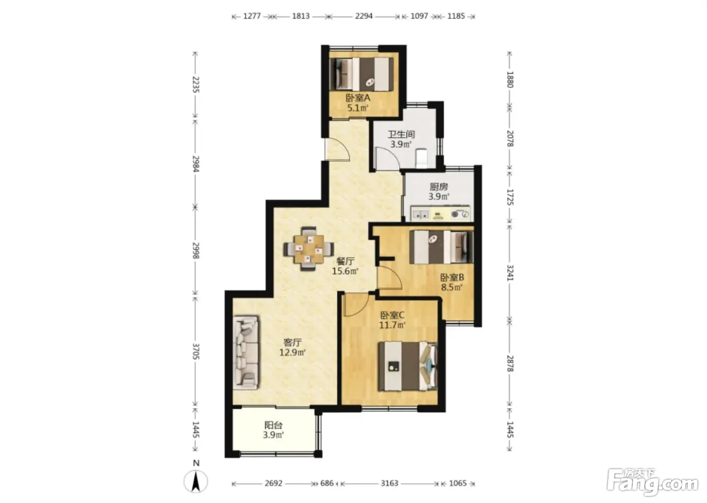 3室2厅1卫