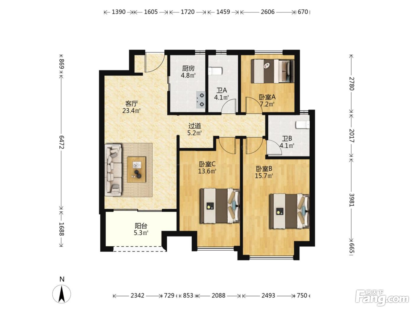 3室1厅1卫