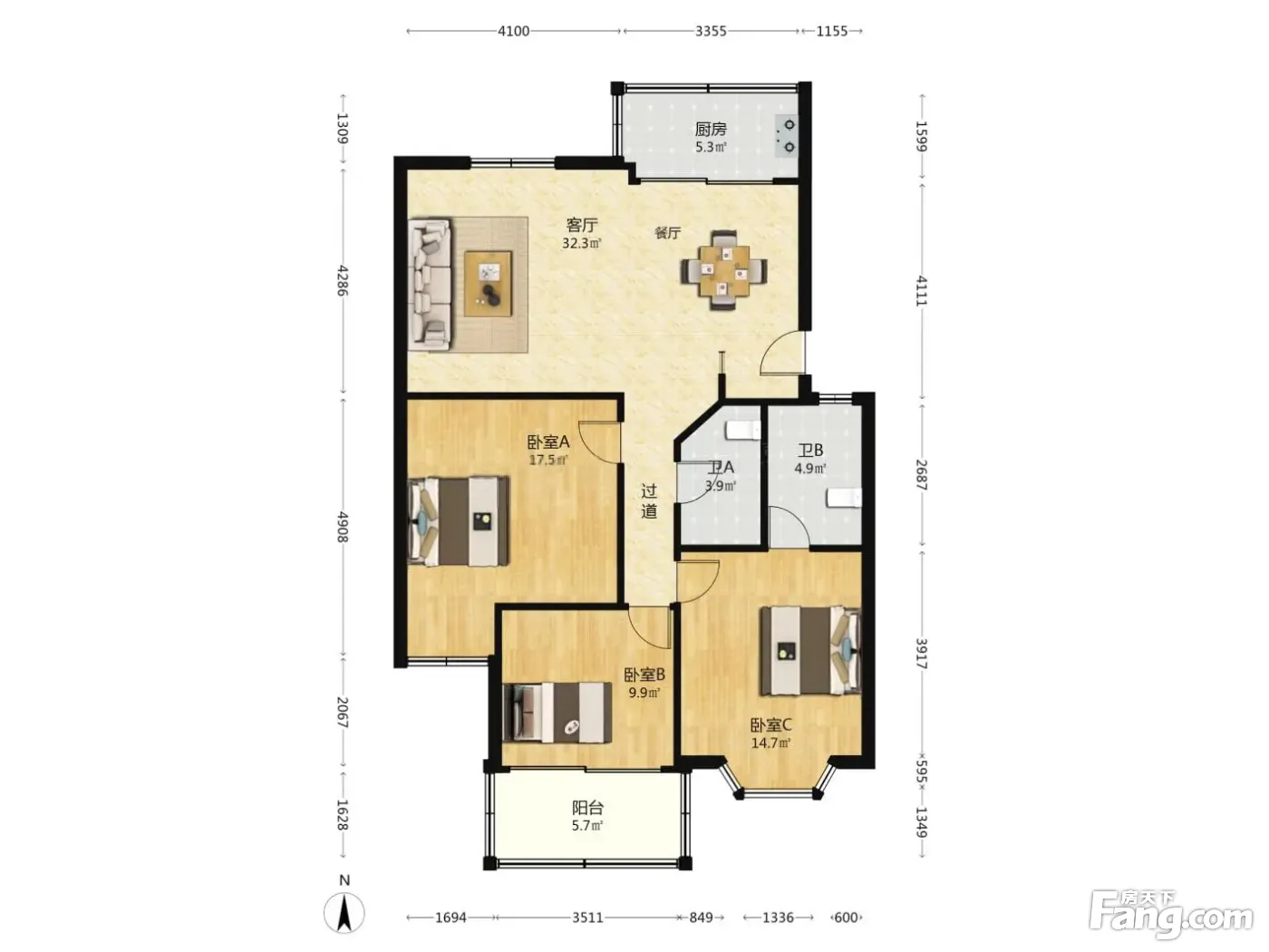 3室2厅1卫