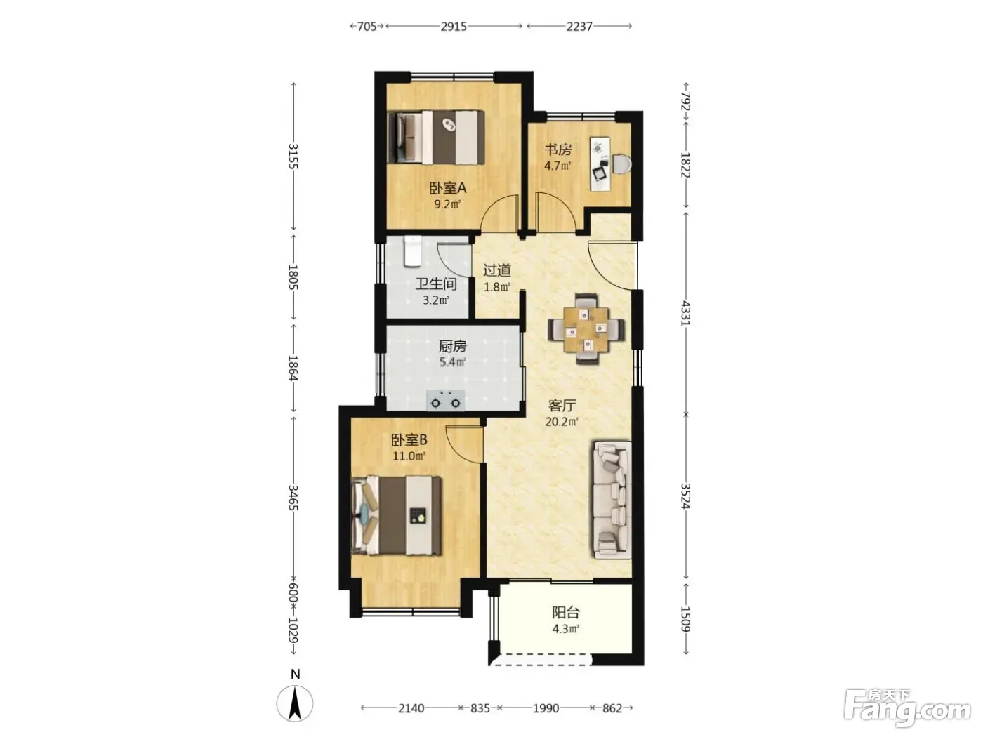 户型齐全,主打客厅朝南,卧室朝南三居
