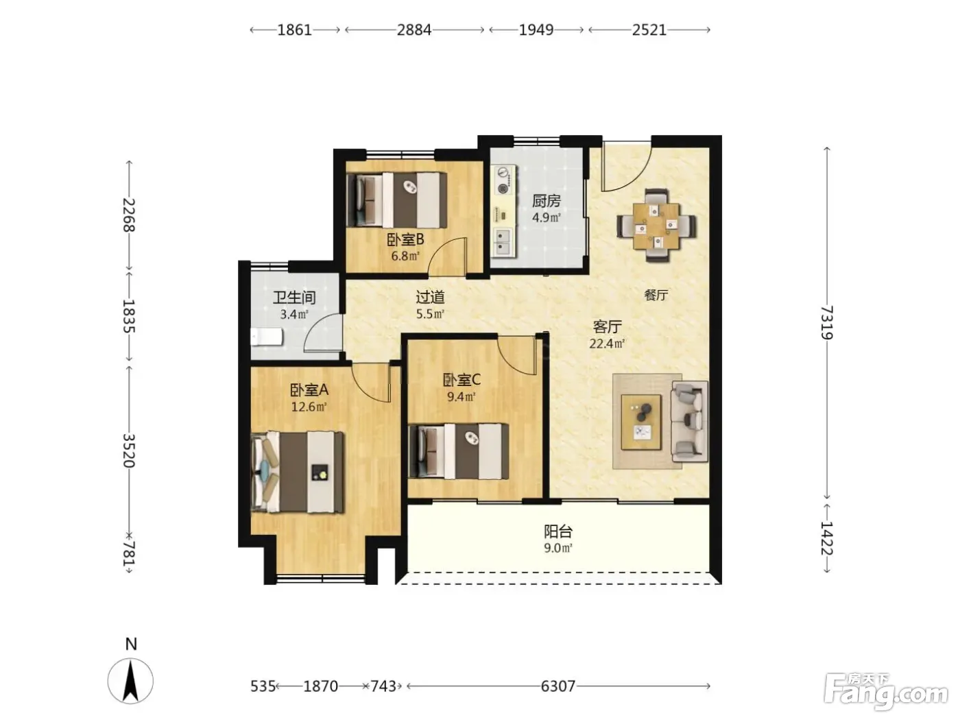 3室2厅1卫