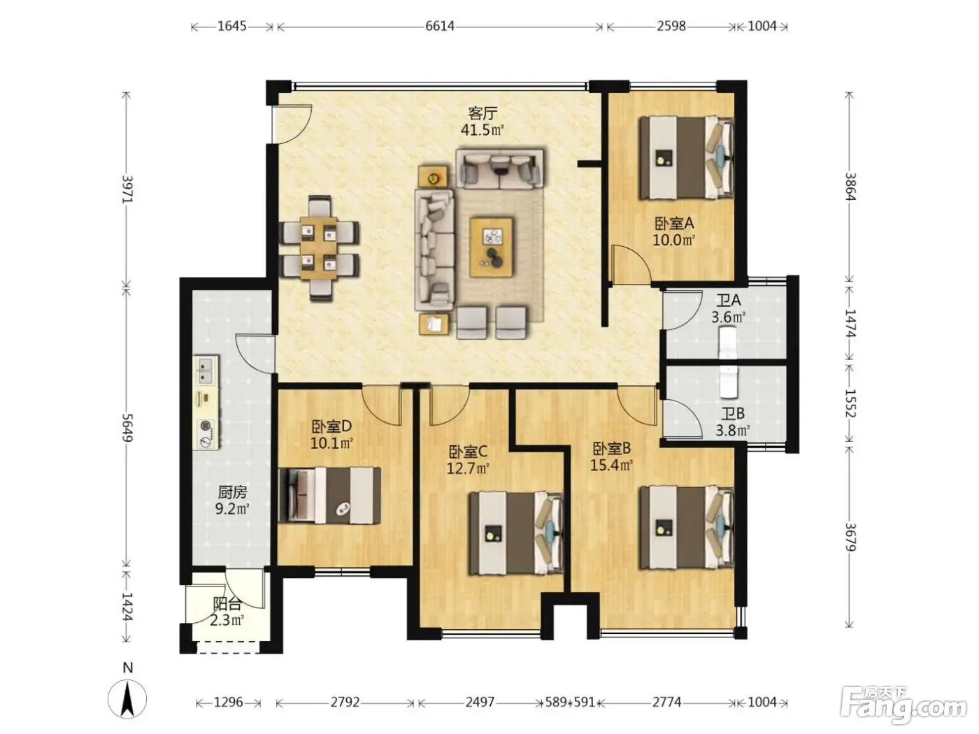 户型齐全,主打明卫,明厨四居