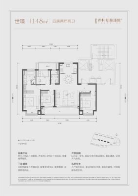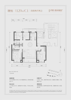 保利·明州瑧悦府户型主要有129平-148平的南北通透,全明格局,户型方正的四居 、104平-117平的南北通透,全明格局,户型方正的三居 。