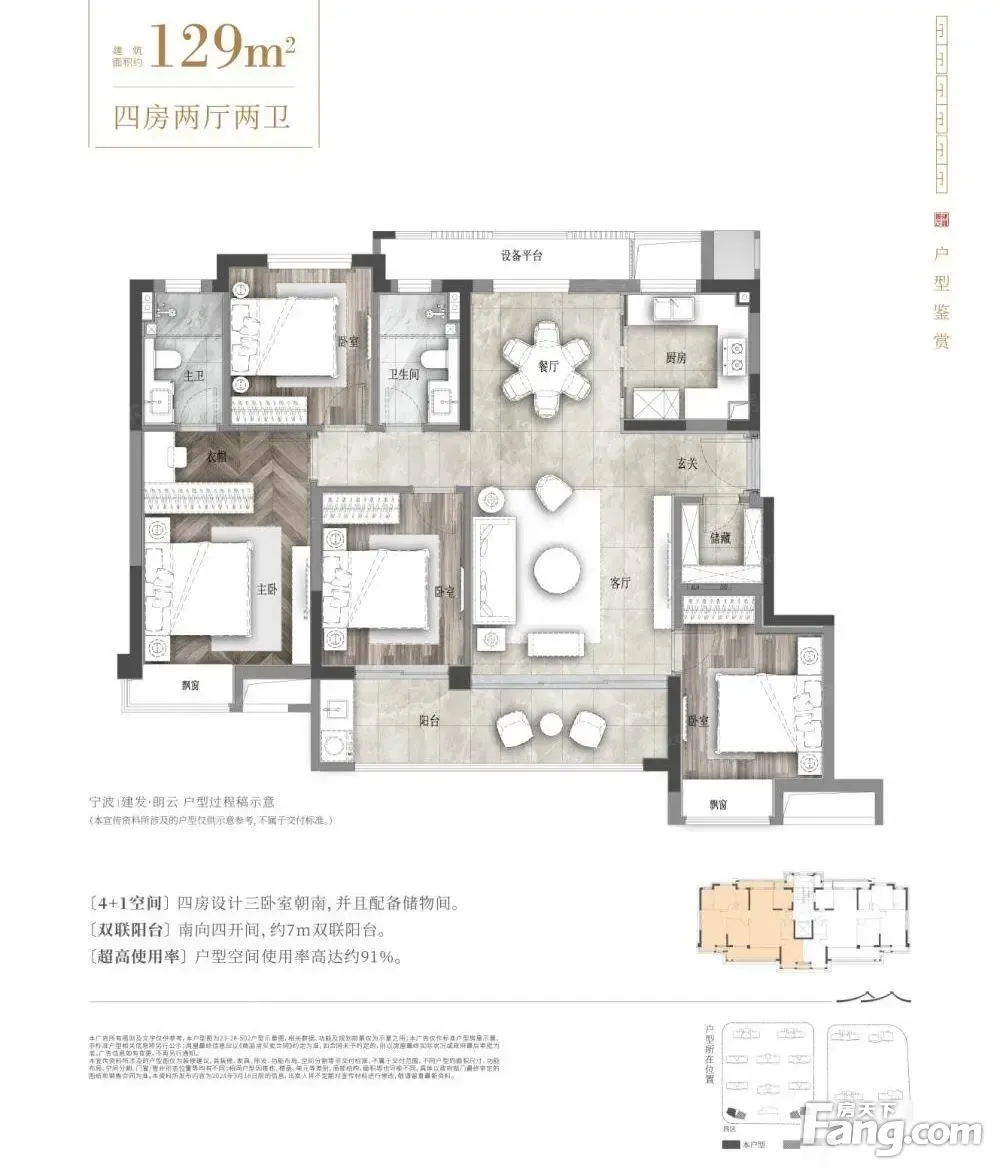 建发朗云户型主要有129平-169平的全明格局,户型方正,动静分离的四居 、107平-107平的南北通透,全明格局,卧室朝南,客厅朝南的二居 、107平-107平的全明格局,户型方正,客厅朝南的三居 。