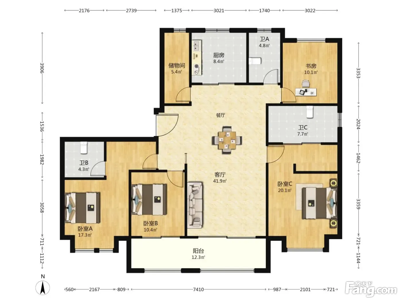 户型齐全,主打南北通透,全明格局四居