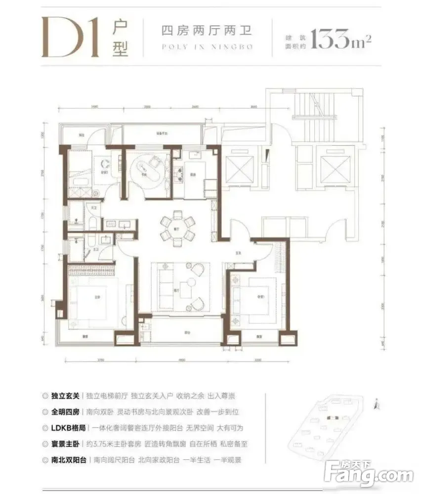 保利·东方瑧悦户型主要有128平-147平的南北通透,全明格局,户型方正的四居 、105平-118平的南北通透,全明格局,户型方正的三居 。