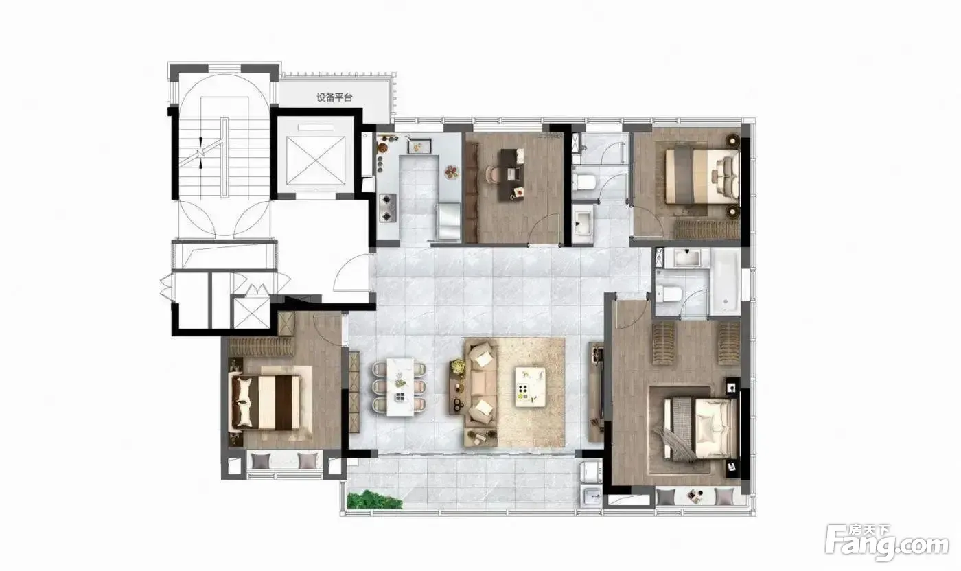 户型齐全,主打南北通透,客厅朝南,开放厨房三居