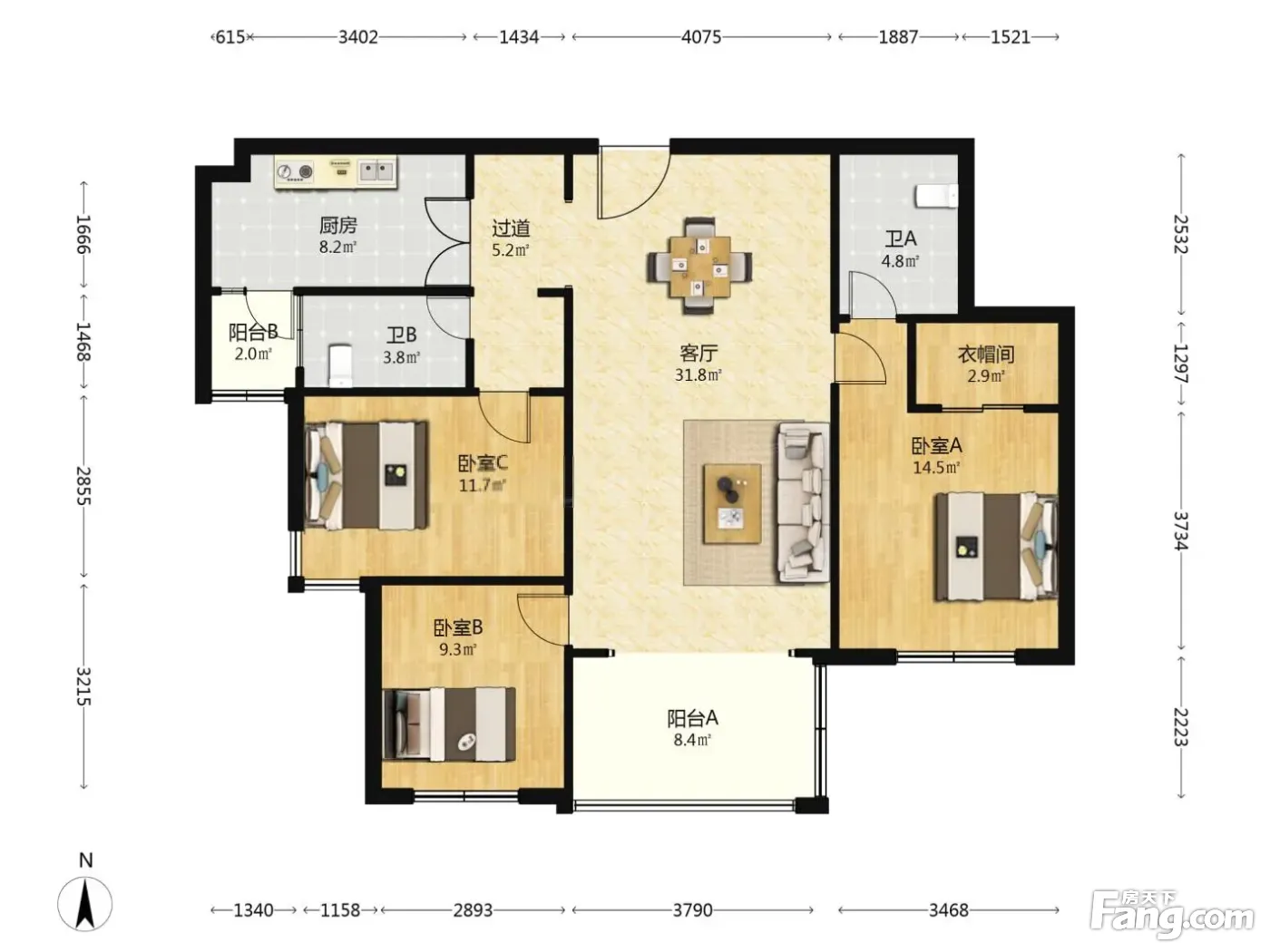3室2厅1卫