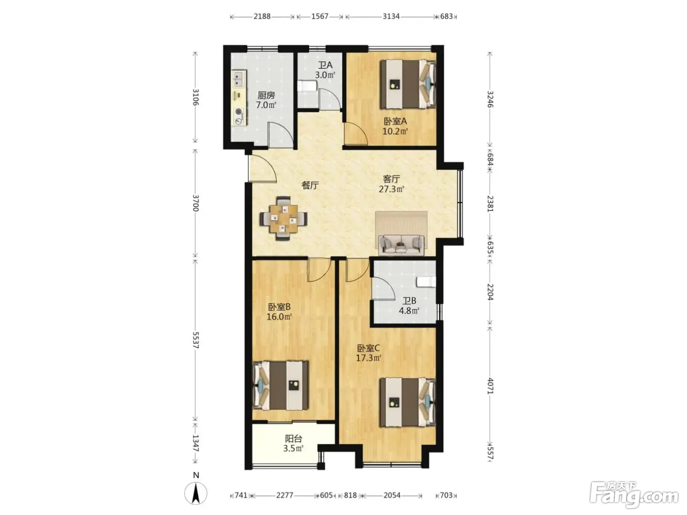 3室2厅1卫