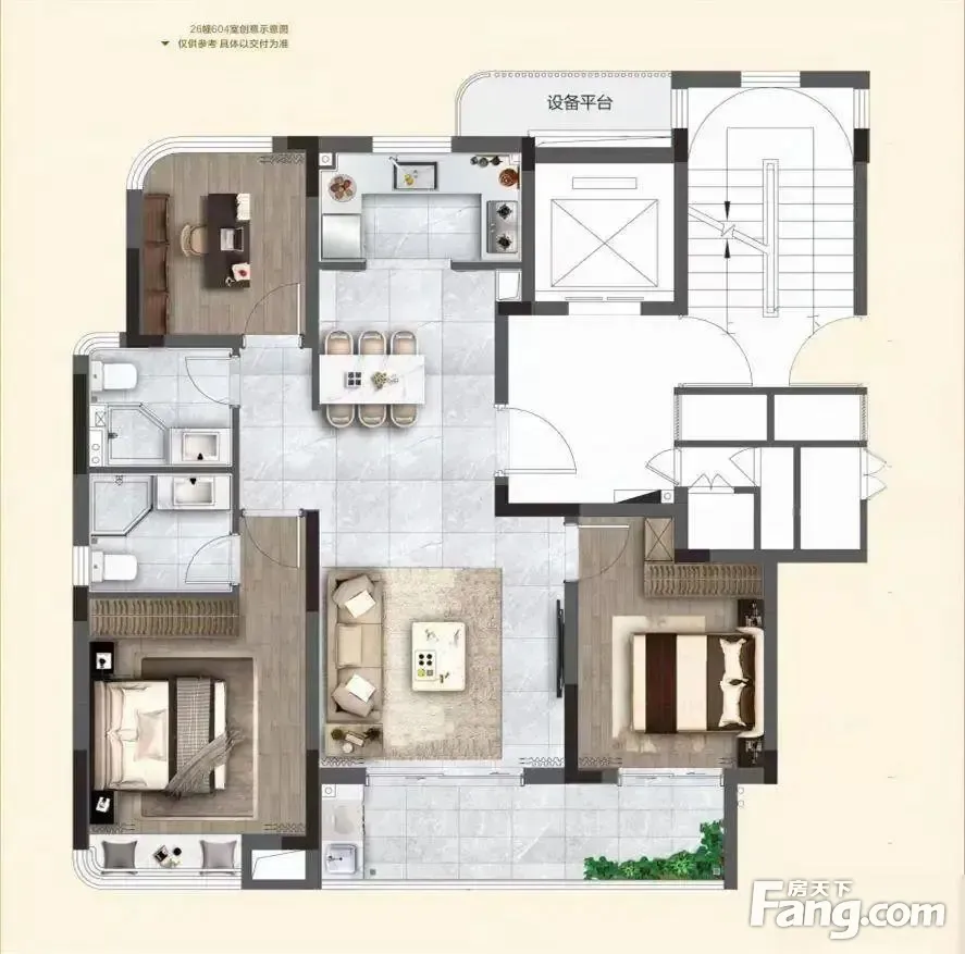 户型齐全,主打南北通透,客厅朝南,开放厨房三居