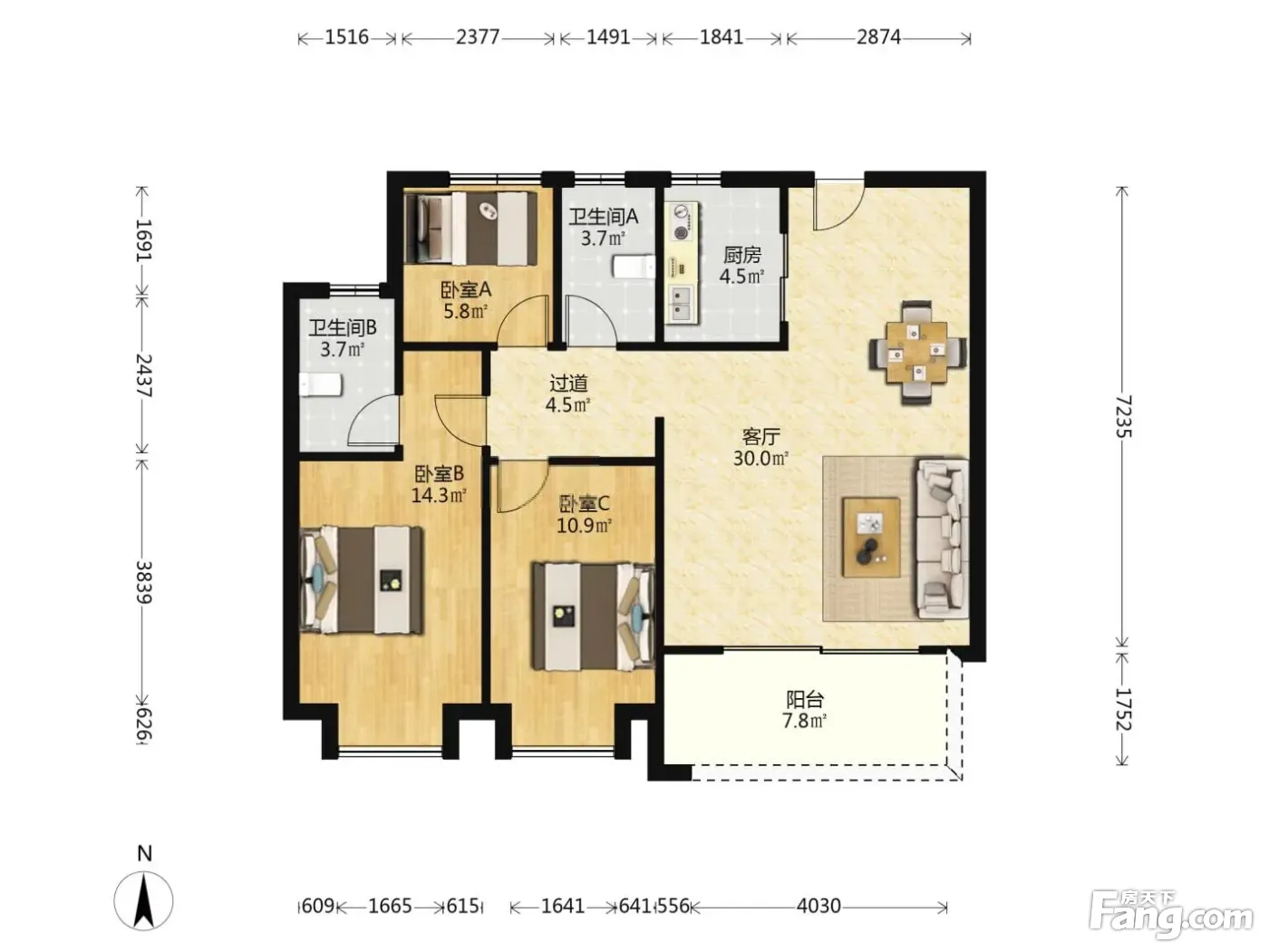 3室1厅1卫
