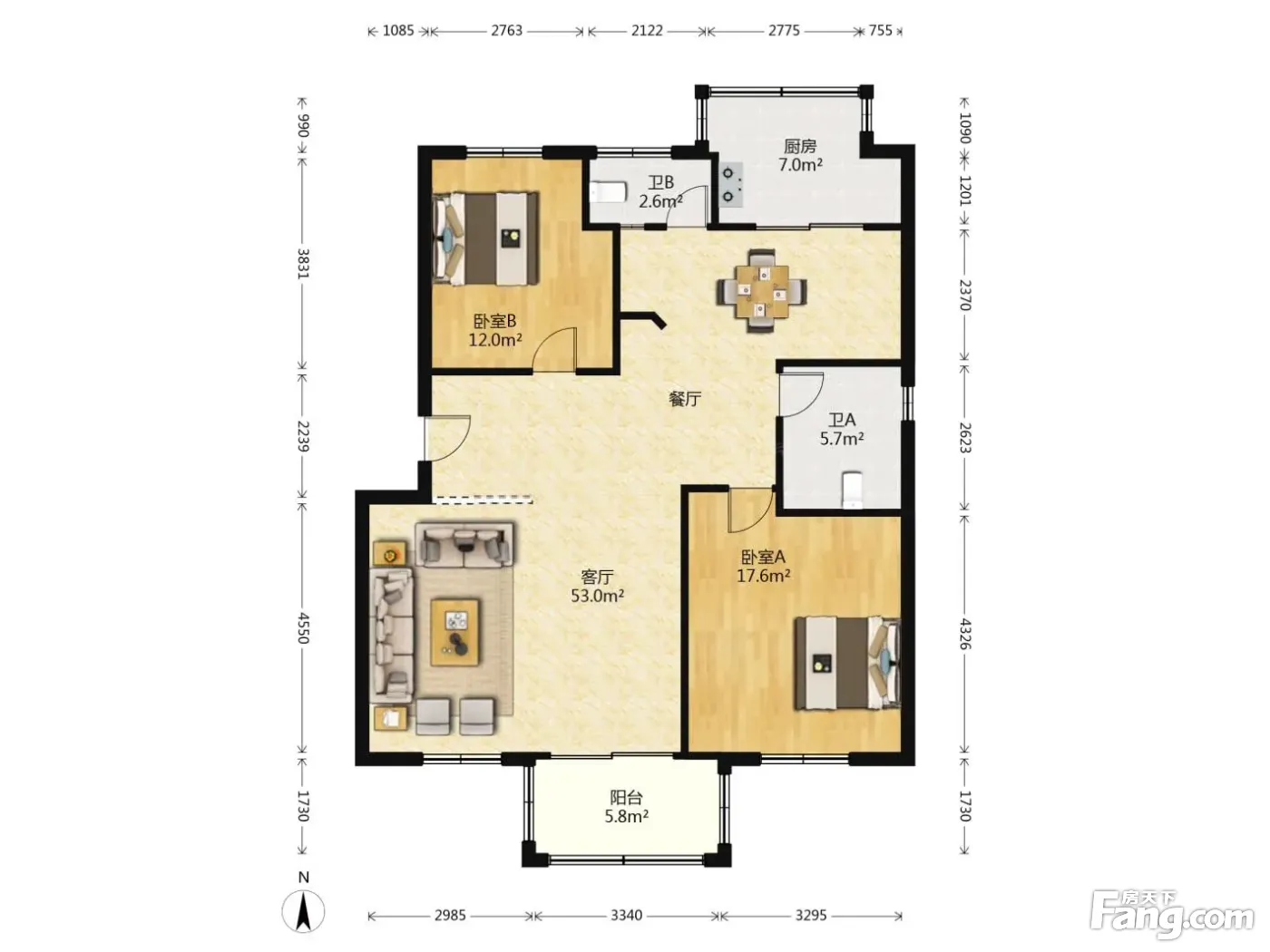 户型齐全,主打户型方正,明卫,明厨,客厅朝南三居