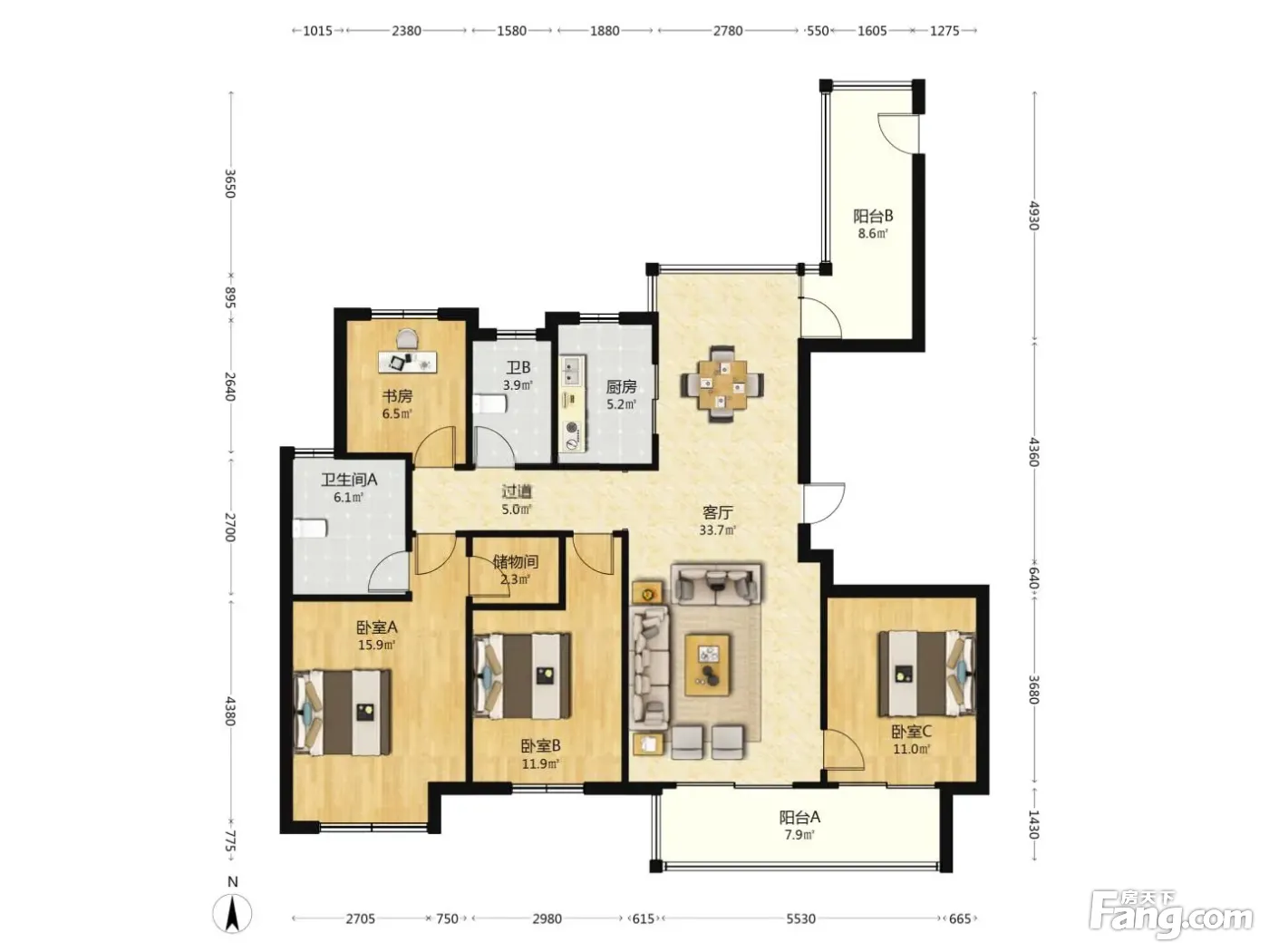 户型齐全,主打明卫,客厅朝南,主卧朝南四居