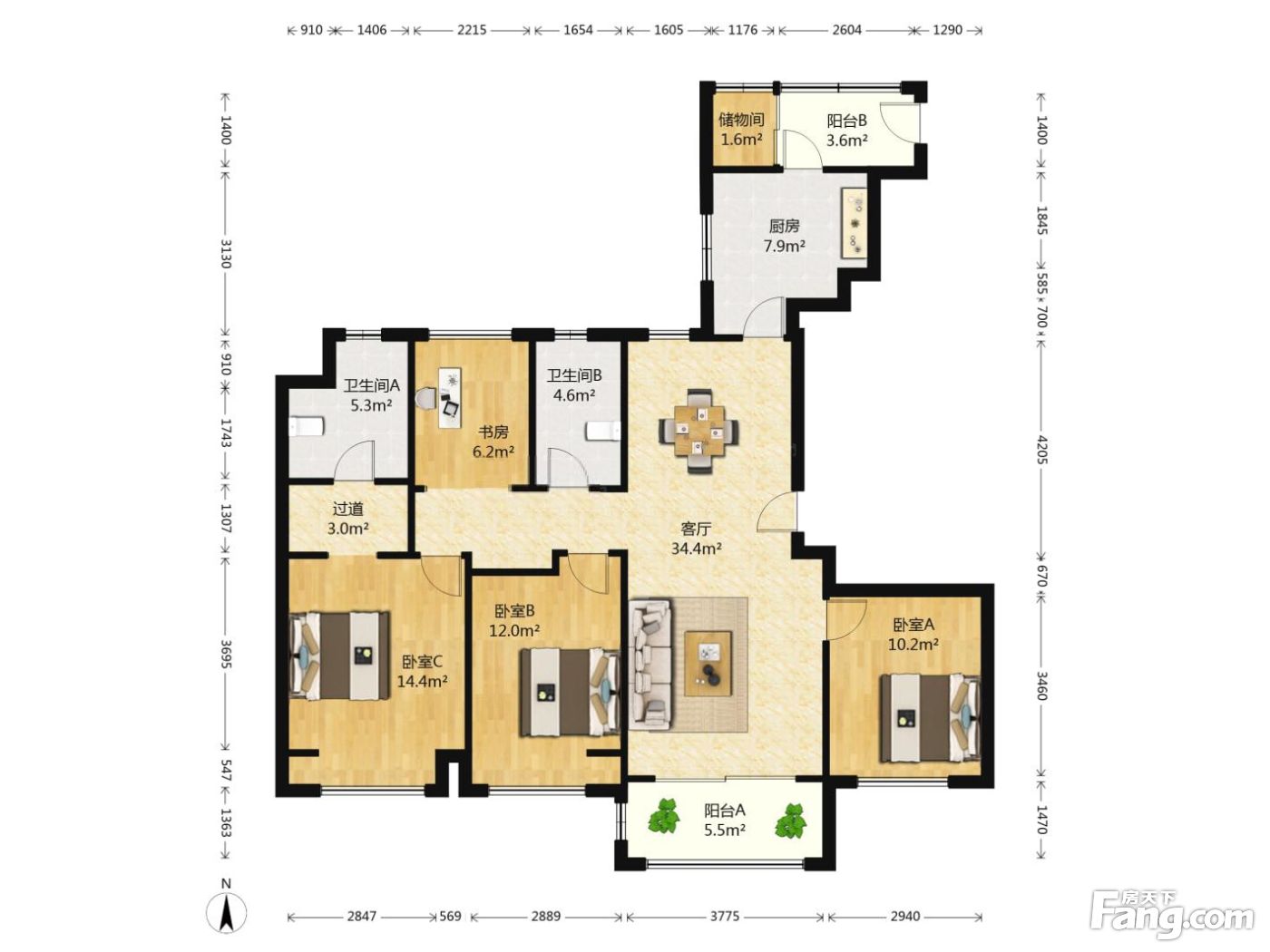 户型齐全,主打明厨,独立衣帽间,明卫,客厅朝南,全明格局,双阳台四居