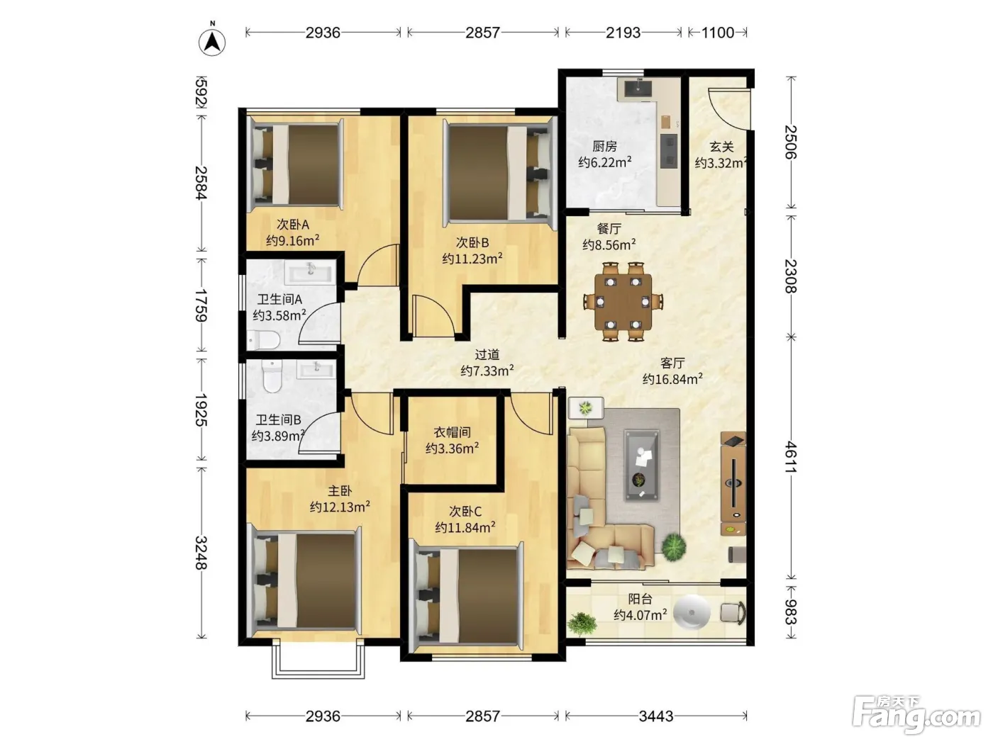 户型齐全,主打客厅朝南,卧室朝南四居