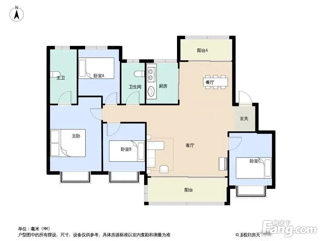 户型齐全,主打全明格局,户型方正,动静分离四居
