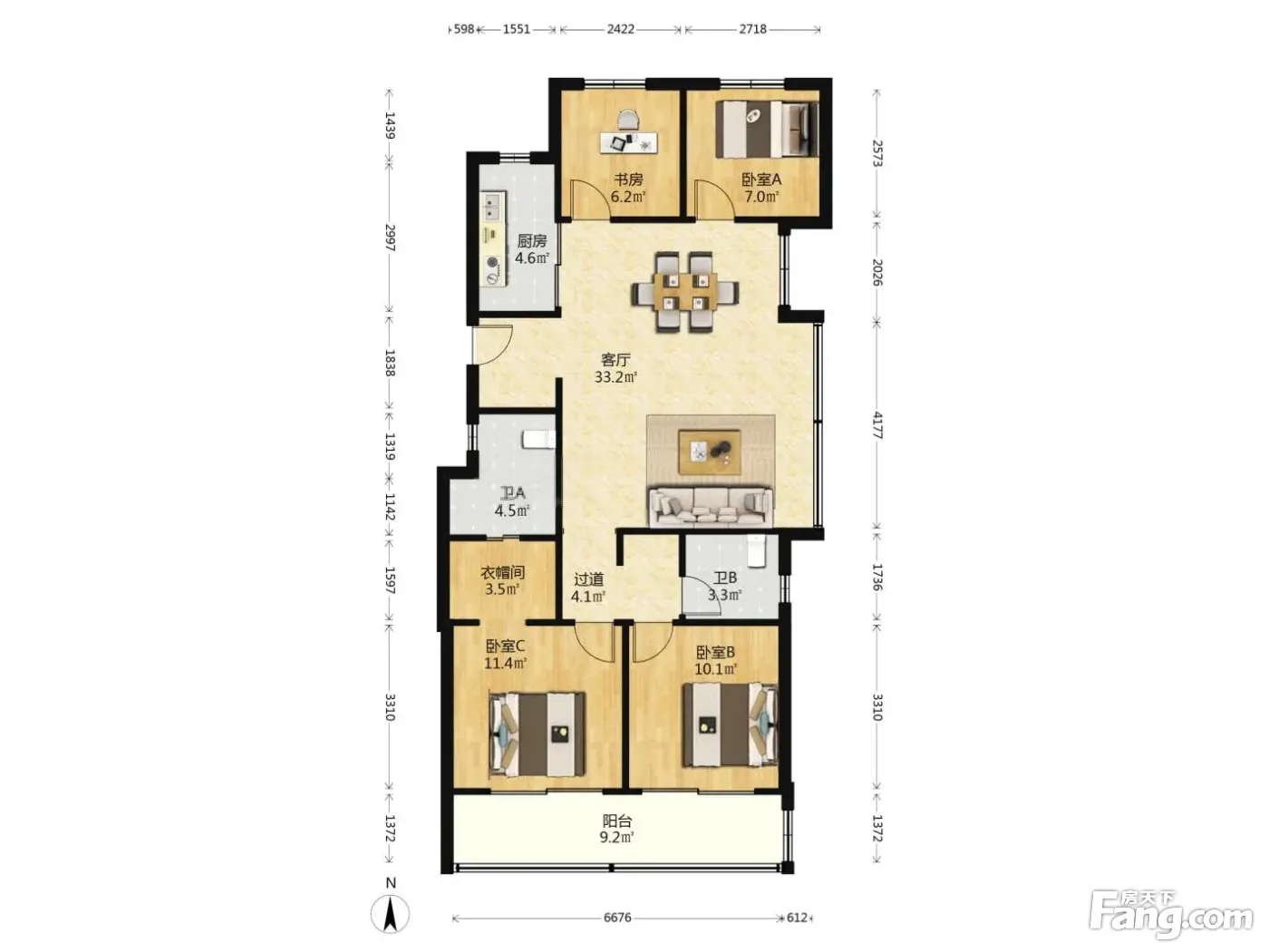 户型齐全,主打南北通透,户型方正四居