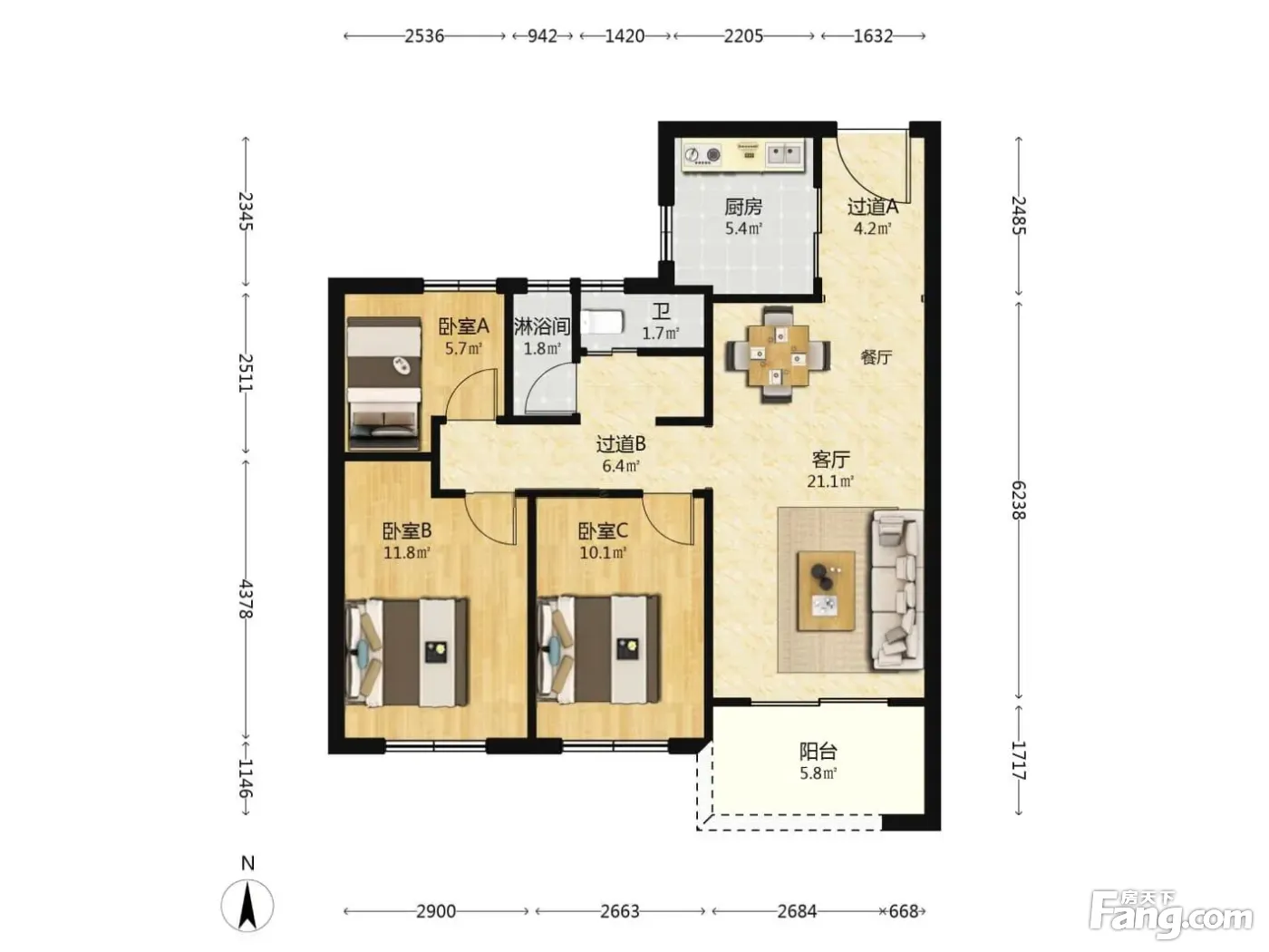 3室2厅1卫