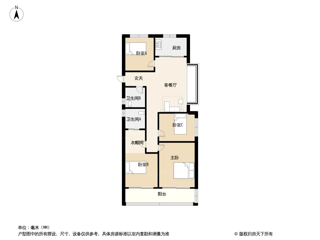 户型方正,采光良好,通风透气,坐北朝南,客厅卧室分布合理,得房率较高!