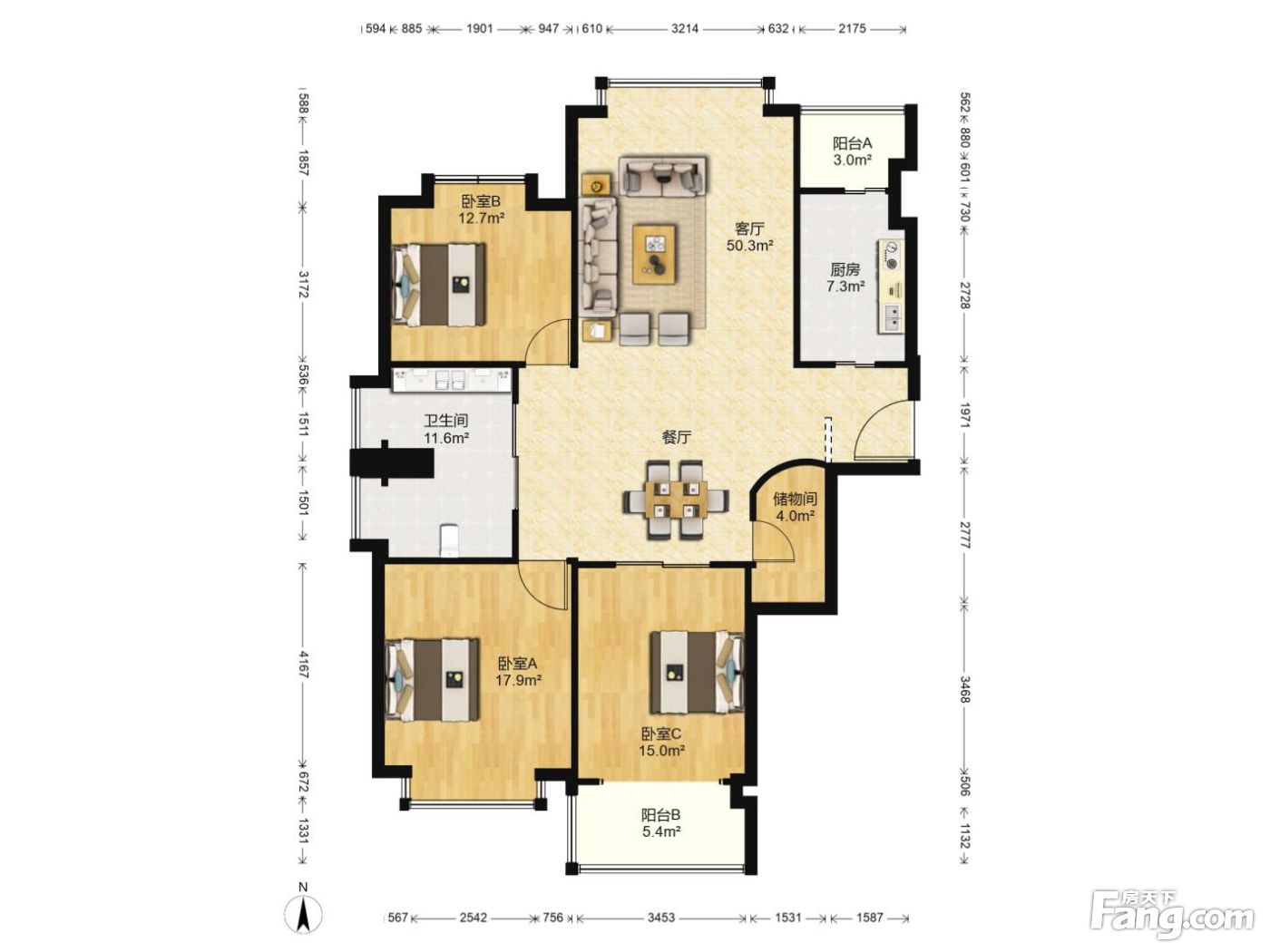 户型齐全,主打明卫,客厅朝南,主卧朝南三居