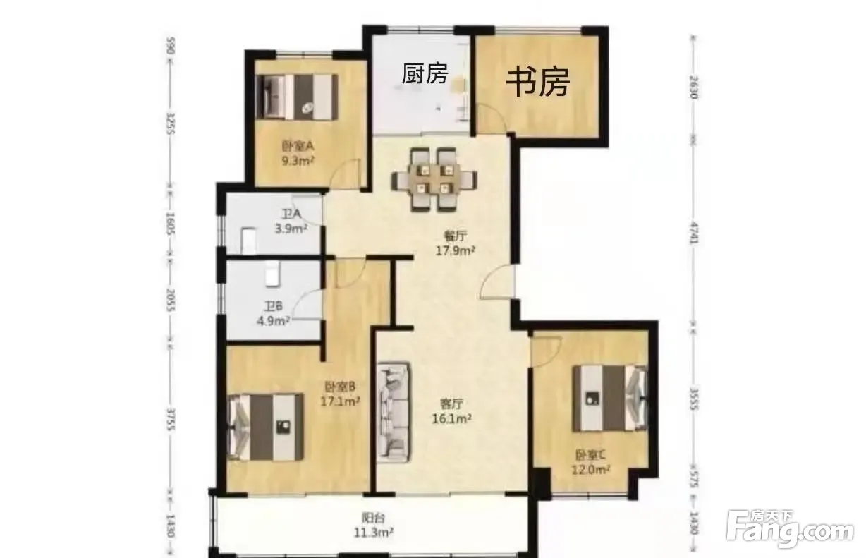 户型齐全,主打户型方正,明厨,明卫,客厅朝南,主卧朝南三居