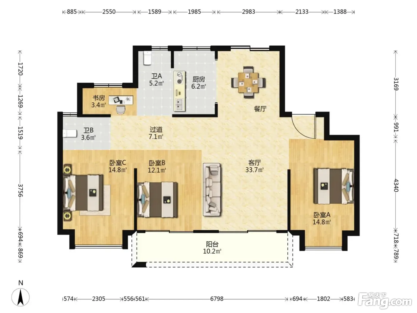 139平方99%得房率带私家大露台