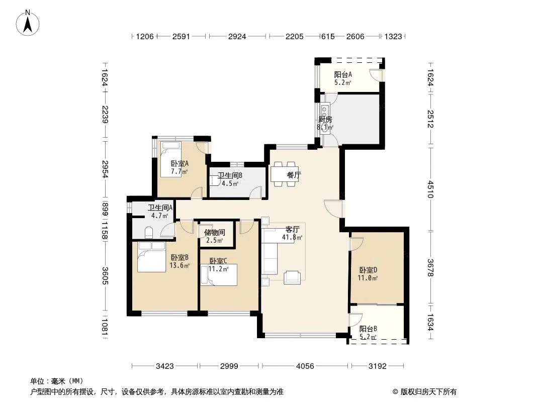 户型齐全,主打明卫,明厨,客厅朝南,双卧朝南四居