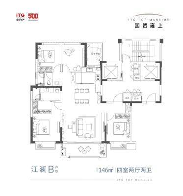 国贸雍上户型主要有124平-124平的南北通透,全明格局的三居 、146平-146平的全明格局,户型方正的四居 。
