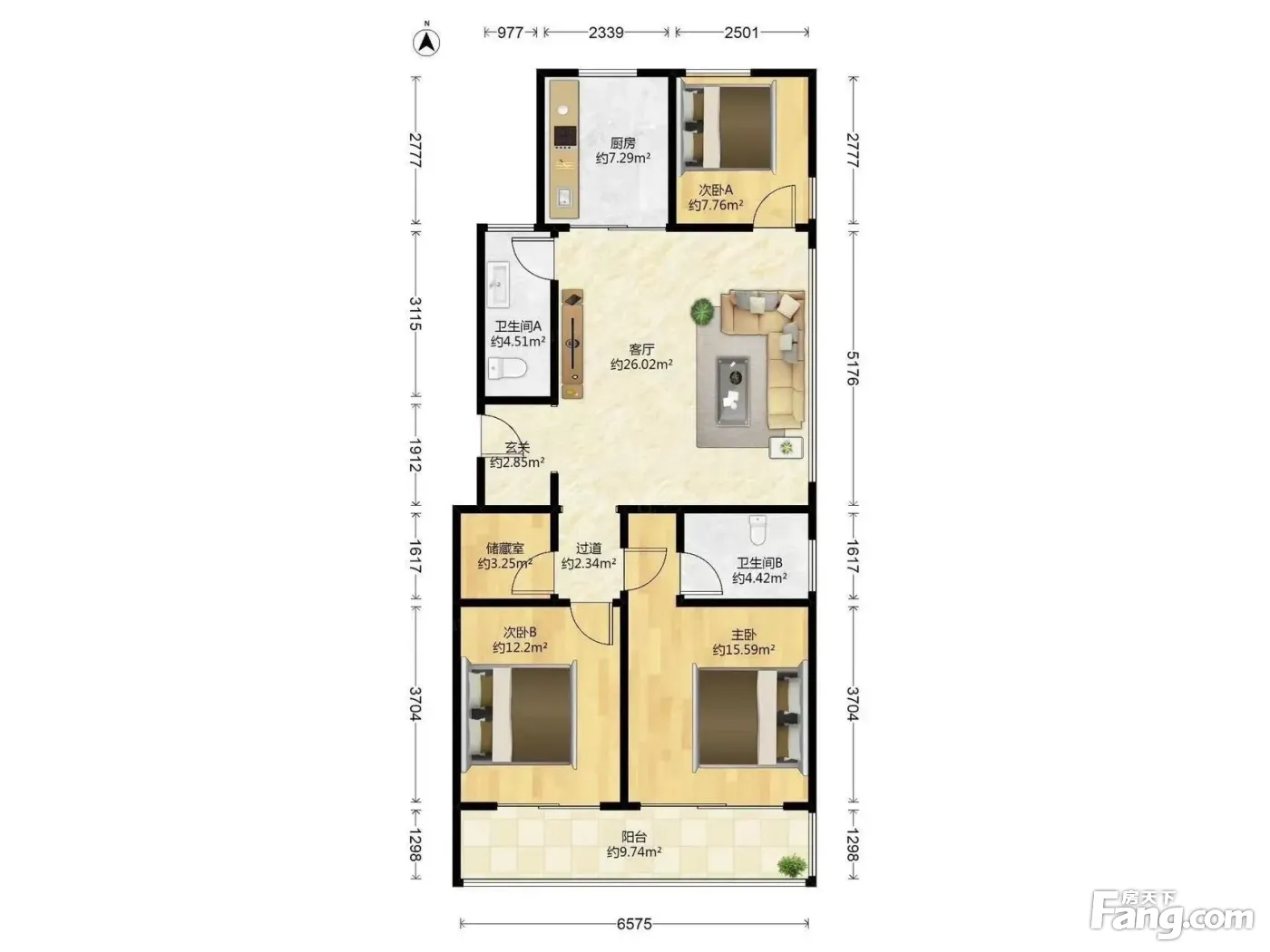 户型方正,采光良好,通风透气,坐北朝南,客厅卧室分布合理,得房率较高!